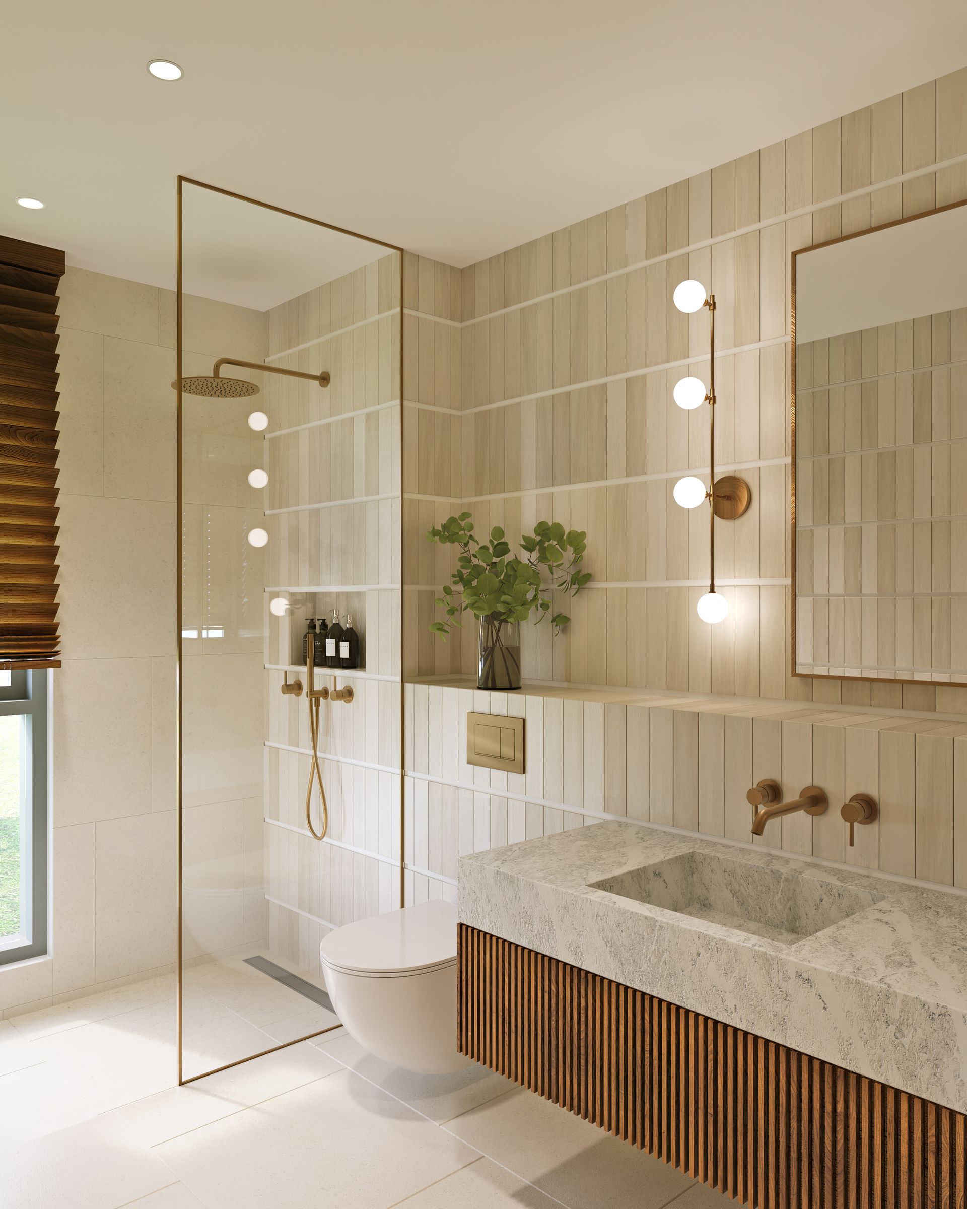 Step into a world where modern sophistication meets cozy comfort in our bathroom sanctuary. Natural materials intertwine with sleek designs, creating an ambiance that’s both inviting and timeless. Picture warm wooden accents complementing crisp corian countertops, while soft lighting accentuates the lush greenery that breathes life into the space. This isn’t just a bathroom—it’s a haven where you can unwind, rejuvenate, and find solace amidst the chaos of the world.