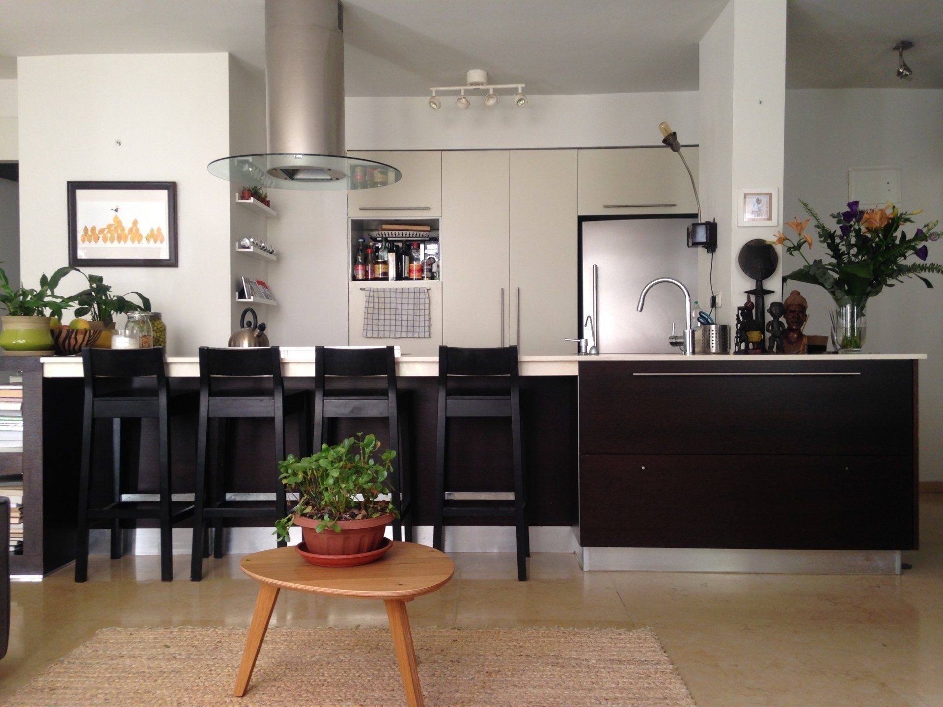 This home styling was done for a young well trav- elled designer in an apartment in the Old North of Tel Aviv. The client loves to have friends and family over, and wanted an interior that was colourful and bold, yet not overwhelming, while feeling welcoming and warm. A subtle combination of tropical colours, world objects, art and textiles were put together to allow this atmosphere to see the day and to reflect the clients personality.