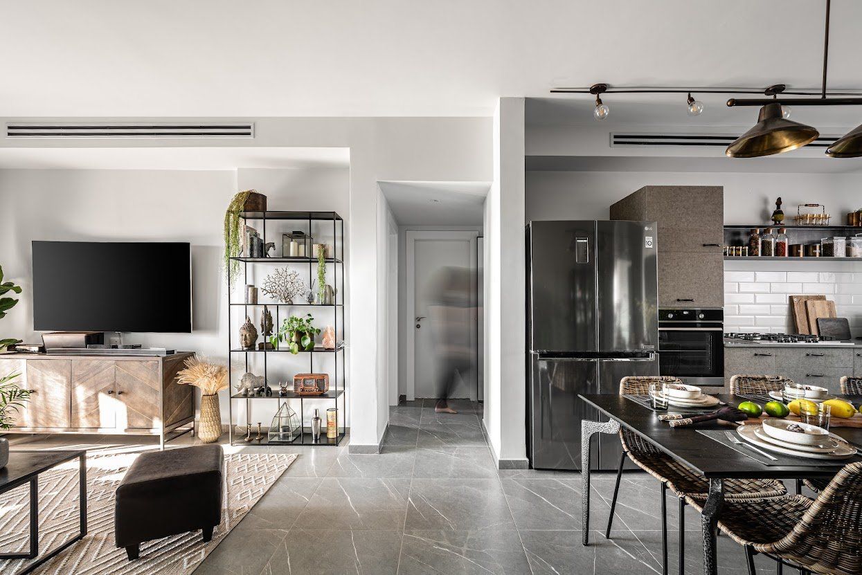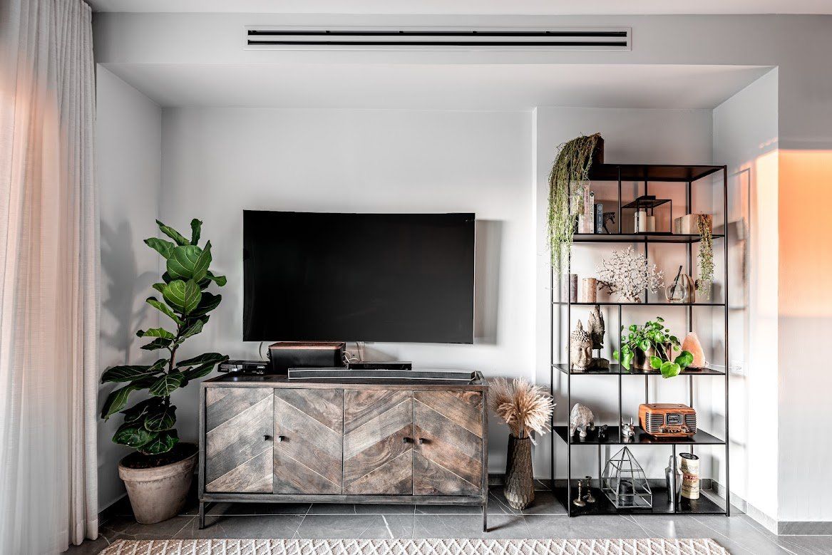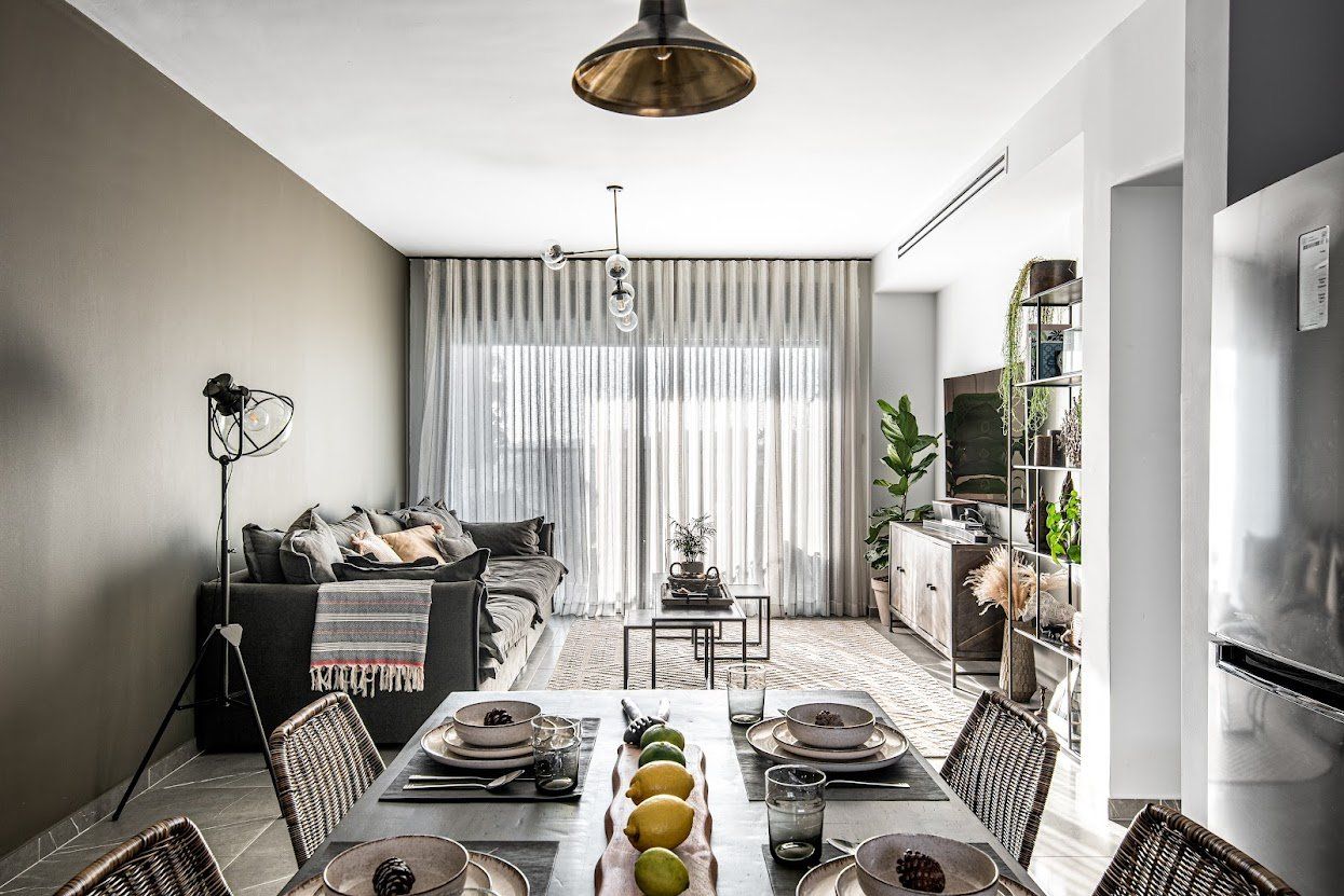Styling of a typical apartment in Kfar Saba Hayeruka for a young couple's first big move. The clients wanted a warm and cosy interior that represented their love of darker colors and eclectic mix of influences.