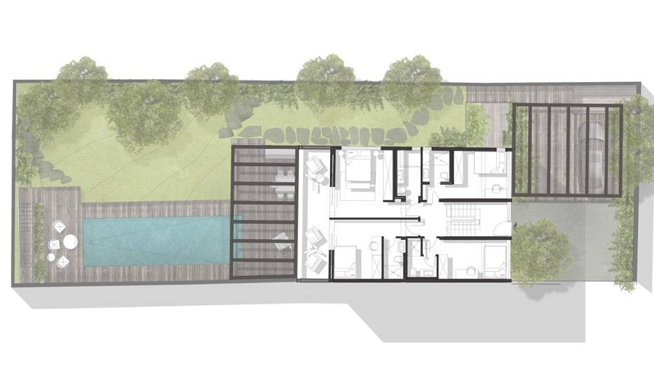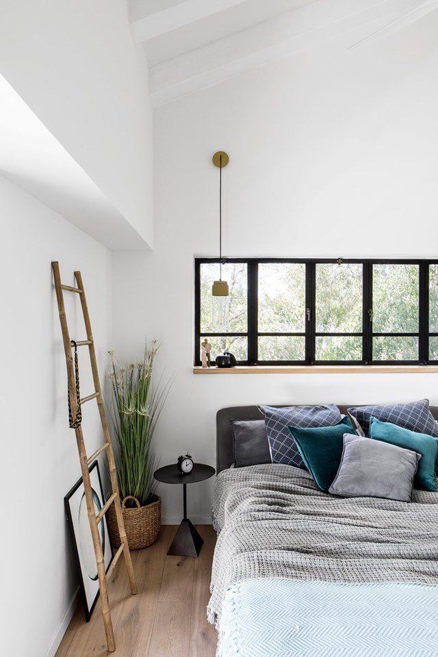 The client wished for a design that respected the soul of the existing structure, combined with a contemporary flare. From a three bedroom and one bathroom, I readjusted the layout to four comfortable and practical on-suite bedrooms. We replaced and added several windows to open up the space towards the outdoor greenery and by replacing the roof, decided to keep the beams visible for higher ceilings and more charm. For the interior design and styling we chose to use clean, earthy and at times colourful lines to create a warm and cosy atmosphere.